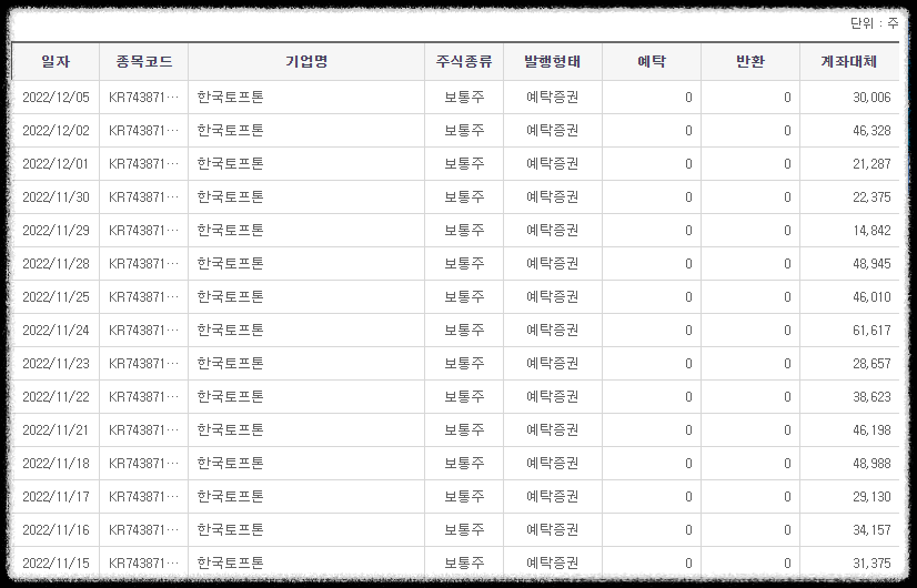 ◈ 한국토프톤 장외주식 최근 거래현황 ◈