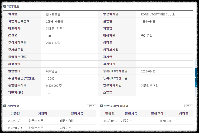 ◈ 한국토프톤 비상장, 장외주식 문의 ◈