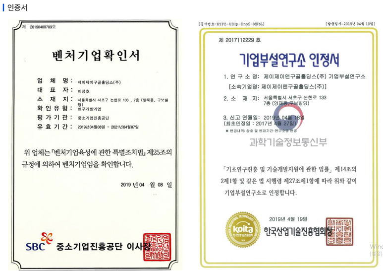 국내 총 20개의 원천기술 특허를 보유하고 있는 회사 입니다.