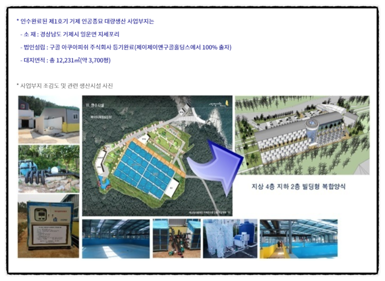 제1호기 거제도 사업부지 및 생산시설을 인수 완료 하였습니다.