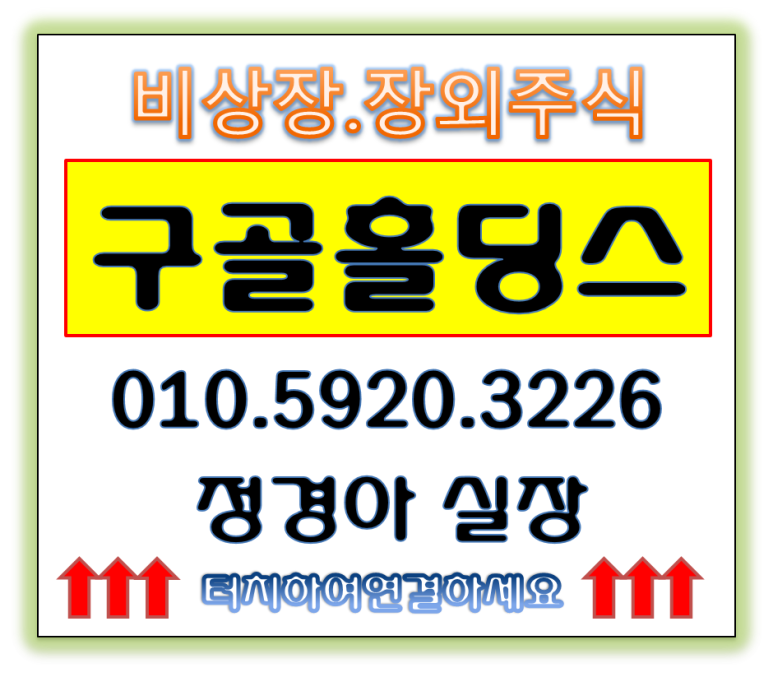 | [구골홀딩스 장외주식]구골홀딩스 주식 문의/ 구골홀딩스 주식 사기 주의/구골홀딩시 장외주식 시세 및 거래 문의 (0) | 2023.11.28 |